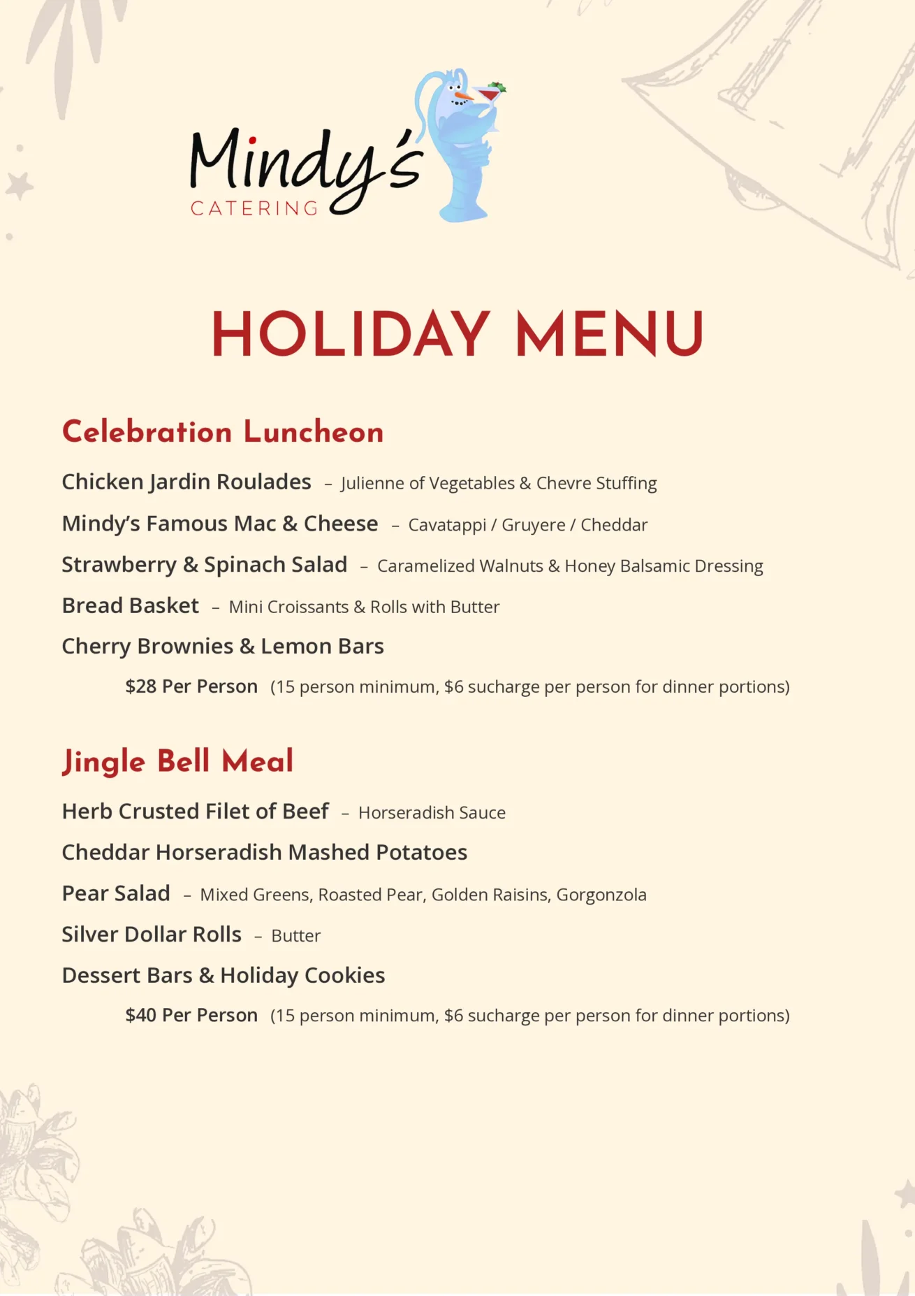 EXCELLENT Based on 30 reviews Posted on Rosie WiedemerTrustindex verifies that the original source of the review is Google. Mindy's is FANTASTIC for catering and even their take-away meals. Their staff is detail focused, so everything is tended to. Erin, the owner, has employed most of the same staff for many years, which is a tribute to her and to the environment in which they work. On the catering front, their food is not only delicious, they can also accommodate food allergies when needed. They are simply the best!Posted on Darlene AshTrustindex verifies that the original source of the review is Google. We recently hired Mindy’s to cater my husband’s birthday party and to say that we were happy is a gross understatement! The contracting process was seamless and Erin provided great insight into what would work well for our event. Delivery of the food went smoothly and we had a table laden with very generous servings of several appetizers. Our guests were all blown away at the quality of the food - as were we! I can’t wait to host another event so we can hire them again!!Posted on Susan PuritzTrustindex verifies that the original source of the review is Google. Our event was EVERYTHING we wished for. It started with Erin understanding our desire to host a celebration that was both elegant and playful. And we achieved it! The buffet, the porch and room of round tables were popping with colorful linens and flowers. Erin has a great eye for design and she also is detail oriented - a perfect combination which gave my husband and me complete confidence that we were in good hands. We love Mindy's chef and the creativity in their menu options. Our guests were blown away by the dinner and the lovely servers who worked SO hard and made it all look easy. Yonas, who was on site to oversee the party, is a treasure - so in charge and delightful at the same time. I want to start planning another party because now I have my go-to caterer. Thanks to Erin and Mindy's crew for making our celebration so special.Posted on Laura FuenzalidaTrustindex verifies that the original source of the review is Google. I recently had the pleasure of using Mindy's Catering for an event, and I must say, it was a wonderful experience from start to finish. The food was absolutely delicious, with every dish bursting with flavor and cooked to perfection. The pricing was just right, offering great value for the quality and quantity of food provided. Delivery was prompt and professional, ensuring everything arrived fresh and on time. Overall, I couldn't have asked for a better catering service. Highly recommended!Posted on Dominique RychlikTrustindex verifies that the original source of the review is Google. We have used Mindy's Catering twice in the last year for family memorial services. They are a perfect blend of quality and reasonable price. We had a lot of excellent choices, the food was high quality and tailored to reflect family favorites, they don't overload you with additional fees and alcohol you pay what you actually use not the inflated prices or corkage fees some of the more well known firms overcharge. They staff appropriately (the big firms insist on overstaffing). Staff onsite are delightful, helpful, unobtrusive, anticipating your needs and they plan for the need appropriately. When Mindy's are in their busy season and you are preparing estimates with them communication can be slow (just follow up if needed) but they performed as agreed with no issues. I would absolutely recommend them to anyone both for the quality of the food and our events went without a hitch.Posted on Jennifer Longmire-WrightTrustindex verifies that the original source of the review is Google. Exceptional Service and Culinary Excellence – A Truly Memorable Experience! I am thrilled to share our incredible and yummy experience with Mind's Catering, who recently catered our nonprofit's annual gala event. From start to finish, the entire process was seamless, professional, and, most importantly, delivered with care and excellence. The team at Mindy's Catering went above and beyond to ensure that every detail was meticulously planned and executed. From the initial consultation to the final dessert, they were a true partner in making our event a massive success. Their staff was not only professional but warm, welcoming, and attentive, making our guests feel truly special throughout the evening. The food was absolutely outstanding – a perfect blend of flavors and presentation. We received endless compliments from attendees about the quality and deliciousness. Whether it was the perfectly seasoned passed hors d'oeuvres, the beautifully crafted food stations, or our seasonal mocktails, Mindy's Catering truly delivered a culinary experience that was fantastic. What truly set them apart, however, was their genuine dedication to our mission. It was clear that the team understood the importance of the event and worked tirelessly to ensure every guest had an unforgettable experience. I highly recommend Mindy's Catering to any organization looking to make their next event truly exceptional. They not only helped us achieve our goals for the evening but made our guests feel valued and appreciated – and for a nonprofit like ours, that means the world. Thank you so much, Erin, and thank you to your entire team and staff, for making our gala an event to remember! It was a joy to work with you!Posted on Thomas BlackwoodTrustindex verifies that the original source of the review is Google. Great food and good service.Posted on linda smithTrustindex verifies that the original source of the review is Google. Lws u need it I’ll find it !Posted on Adrianna VegaTrustindex verifies that the original source of the review is Google. My brother attended an event where Mindy's Catering service provided where I was able to taste how delicious the smoked chicken and brisket with beans tasted!Posted on Ella ScottTrustindex verifies that the original source o